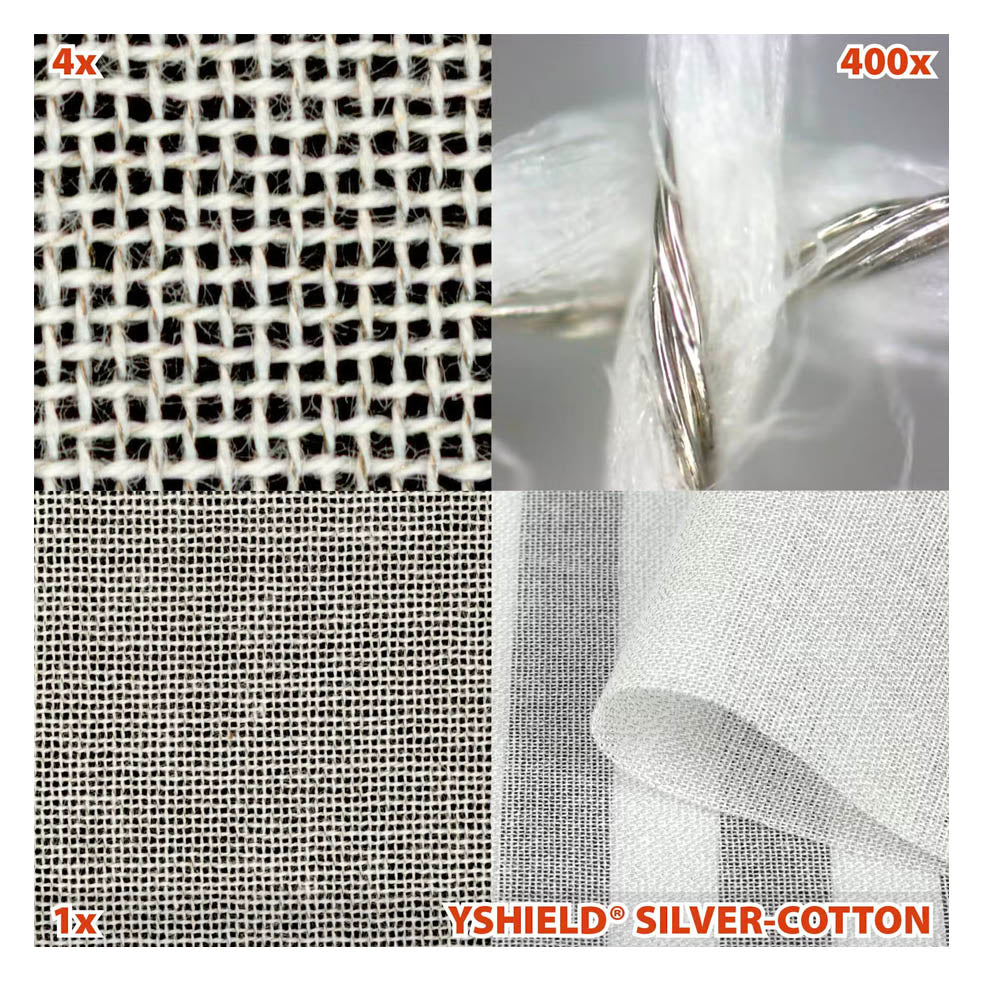 Silver-Cotton é um tecido YSHIELD® de algodão semitransparente com um elevado teor de fios de prata para proteção contra as radiações de alta frequência (HF) e baixa frequência (LF). Ideal para cortinas, dosseis, divisórias de ambientes em laboratórios, consultórios médicos e outras coberturas de protecção. O seu aliado perfeito para o proteger dos perigos invisíveis dos ambientes. Verificado e certificado para sua segurança.